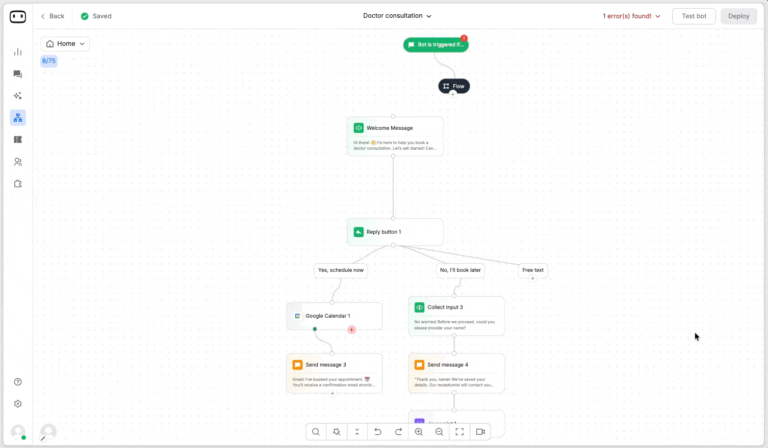 Flow action block is used to segment parts of your chatbot tree into smaller flows.&#x20;