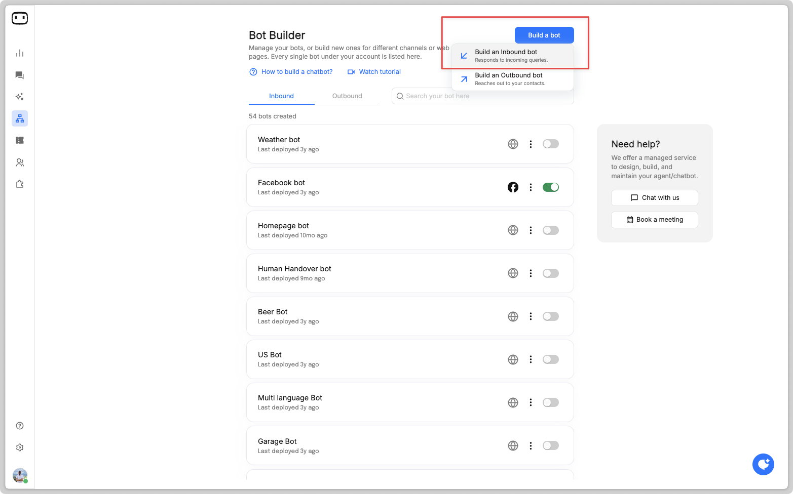 Go to Bot Builder > Build a bot > Inbound > Web