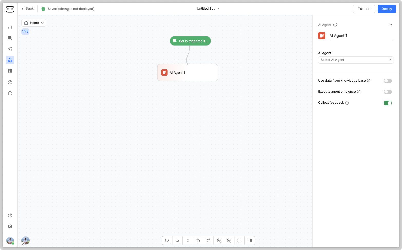 Choose the "AI agent" block from the list and create a new AI agent from the right panel.