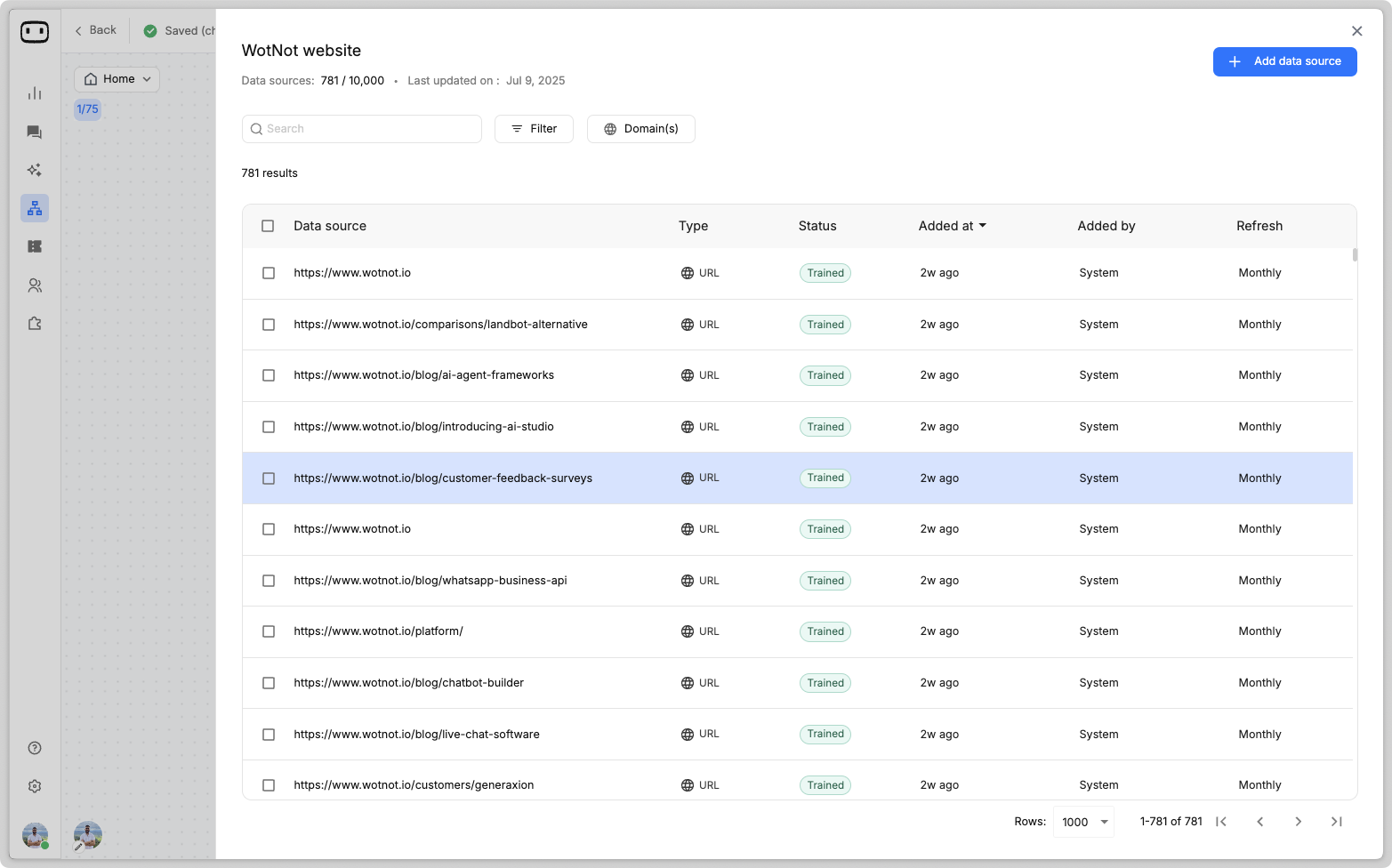 * [Setup refresh frequency](https://help.wotnot.io/build/knowledge-base/refresh-frequency) for your website data sources, so that it is always up-to-date.
